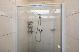 Badkamer is voorzien van douche en wastafel.