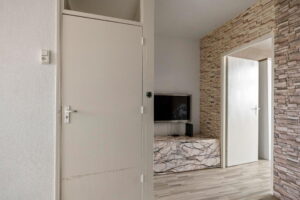 De woonkamer is kleiner doordat er een extra slaapkamer gesitueerd is, dit is makkelijk naar de oorspronkelijke staat te realiseren door tussenwand te verwijderen( geen dragende muur).
